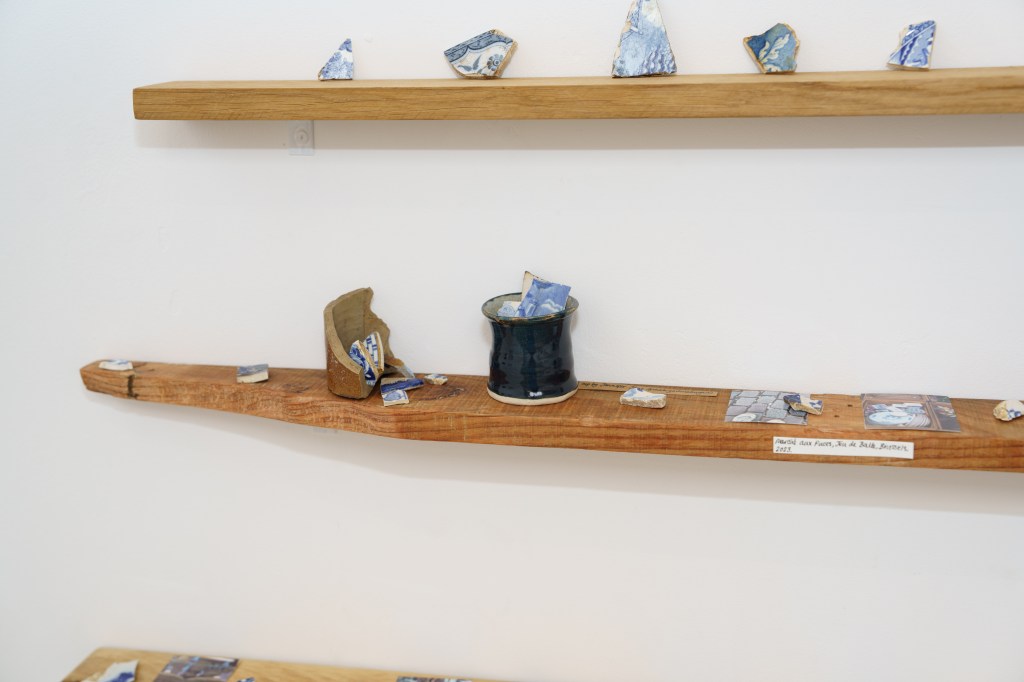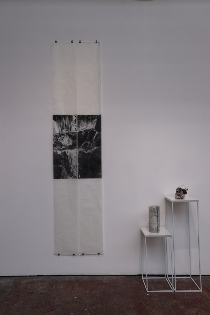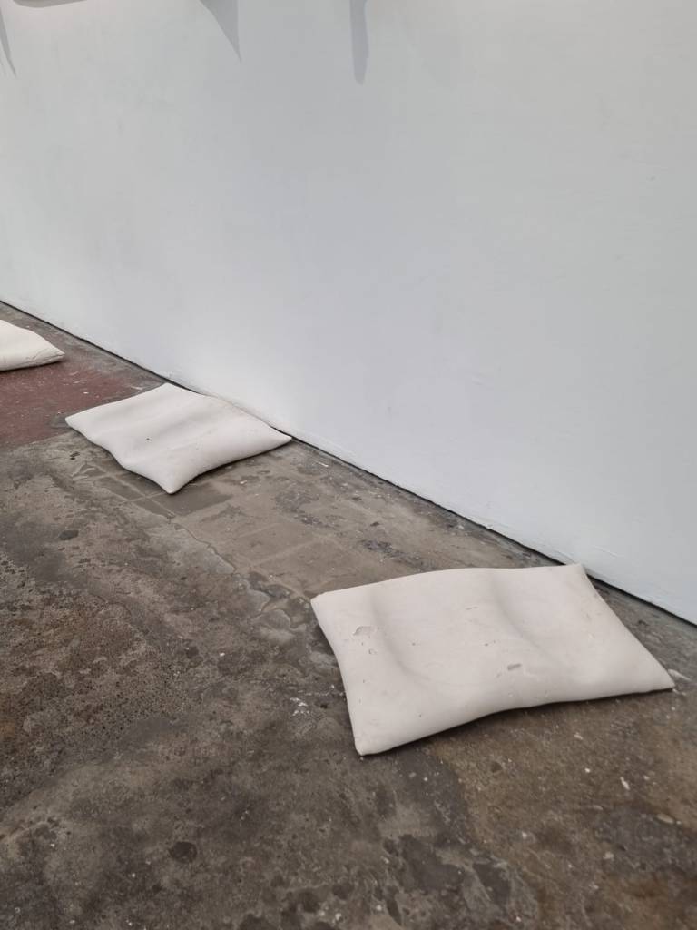 For Displaced Fragments, Te makes casts from marks left by her body whilst recycling British clay deposits. Nele considers how the features of stagnant objects reference the past physical and mental energy involved working with materials in a conscious way. Resituating Te’s casts in a curatorial context, Nele arranges and frames this record of sustained movement as artefacts on display.