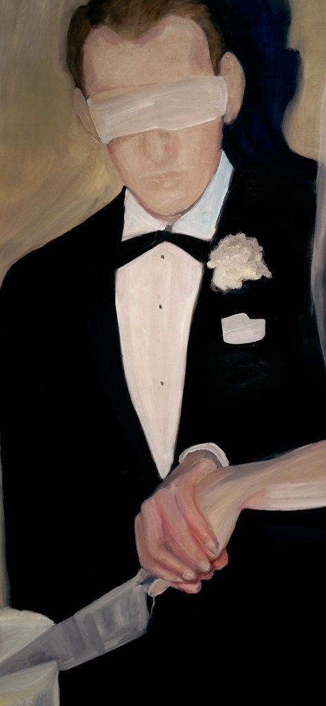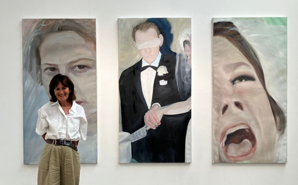 ‘History’, who records it and who determines what stories are told, is the focus of Jane Hughes’ painting practice. Seen through the prism of women’s ‘political experience’ within the institution of marriage or domestic partnerships Jane reframes the stories of women, largely obscured and expunged from history, directing our attention to where power resides and who has agency. In her most recent paintings Jane explores the semiotics of the ‘veil’ worn by the bride in the wedding ceremony with its traditional associations and ideas around feminine identity namely; idealised beauty, purity, and submission. Ideas which continue to reverberate and have relevance to current debates about ongoing inequalities society refuses to see or chooses to forget.
