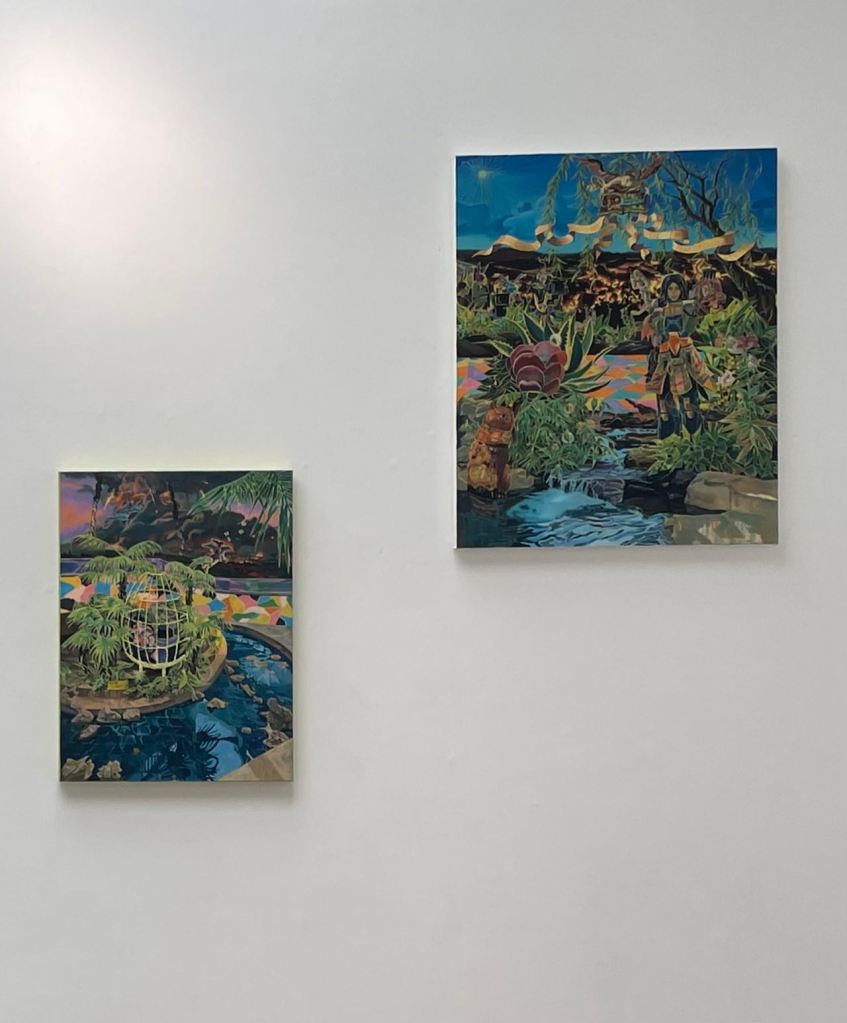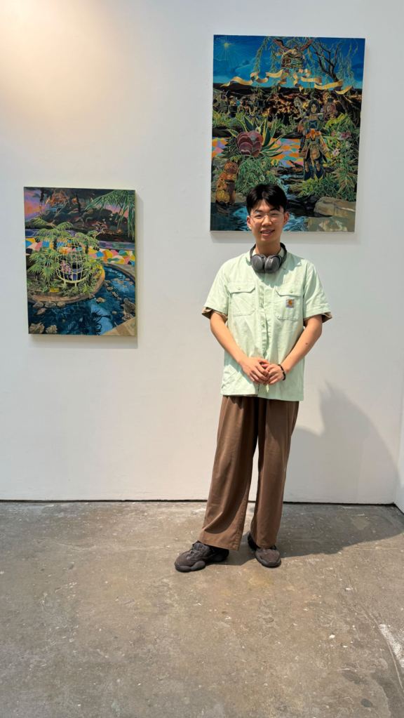 Tong Wu’s body of work described a unique perspective on cultural, socio-political, and social media issues in contemporary society, as seen through his own observations and interpretations. Tong’s figurative and vividly colourful paintings delve into cultural, societal, and philosophical themes ranging from ancient Greek mythology to post-modernism, as well as issues that are pertinent to modern society. Tong’s style is theatrical and narrative, using bold colours and striking compositions to create glamorous and bizarre stages that highlight the artificiality and performativity of contemporary society’s issues. They are absurd but visually appealing, drawing the viewer into a journey that is both metaphorical and contradictory, with an uncanny sense of something being wrong.