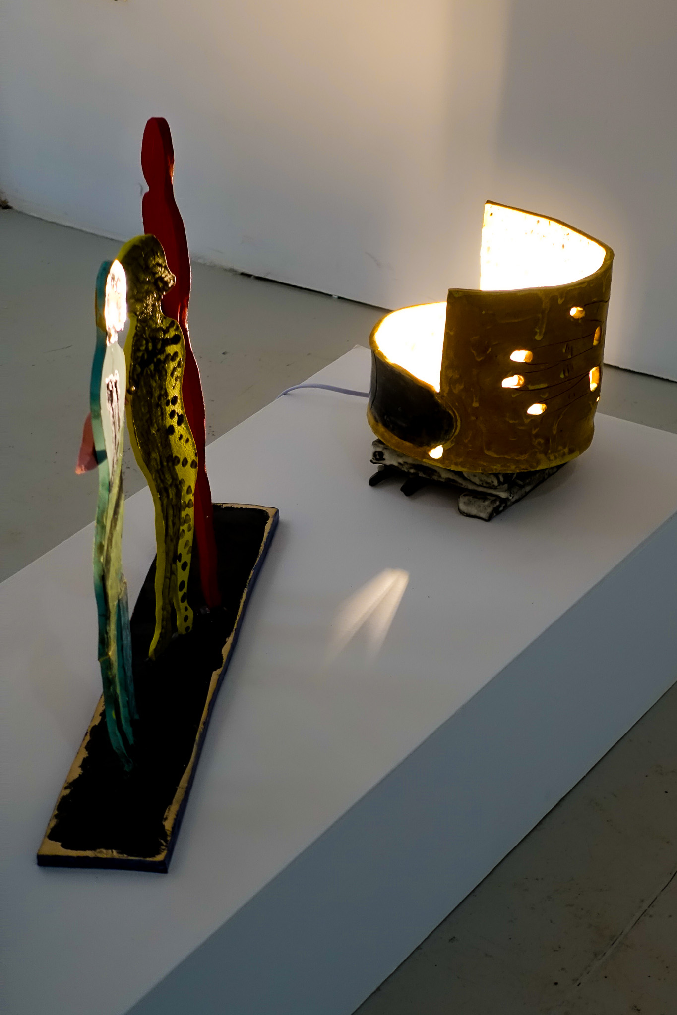 earthenware glazed ceramic light installation, 20 x 18 X 20cm, 19 x 24 x 17cm