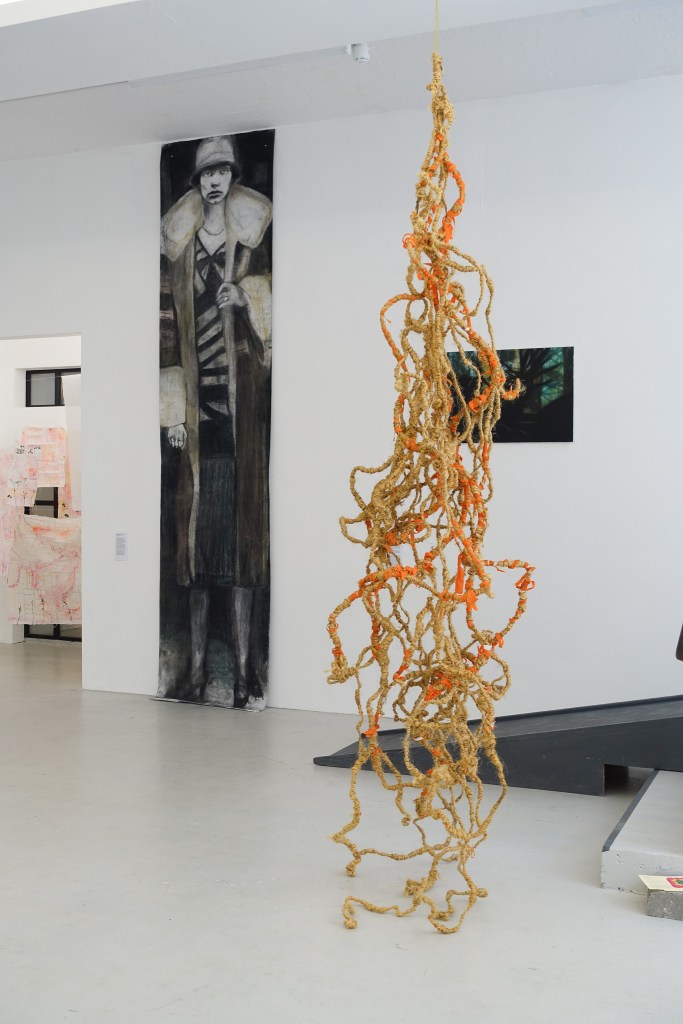 This sculptural work reclaims a historically punitive labor, picking oakum as a form of resistance. Once imposed on the poor, prisoners, and workhouse inmates to discipline the body through slow, extractive labour, the act is here transformed into a practice of care, endurance, and memory. Hundreds of meters of reclaimed sisal rope are unwound into strands and rewound by hand with the orange fragments from dismantled life jackets, materials marked by migration, survival and disposability. In resisting speed and efficiency, this process challenges the capitalist logics of productivity and value. It centres what is cast off: the damaged, the unwanted, the unprofitable. Through repetition and touch, Rhi confronts systems that commodify human life and erase certain forms of labour. Picking oakum is not nostalgic, it is a reckoning.