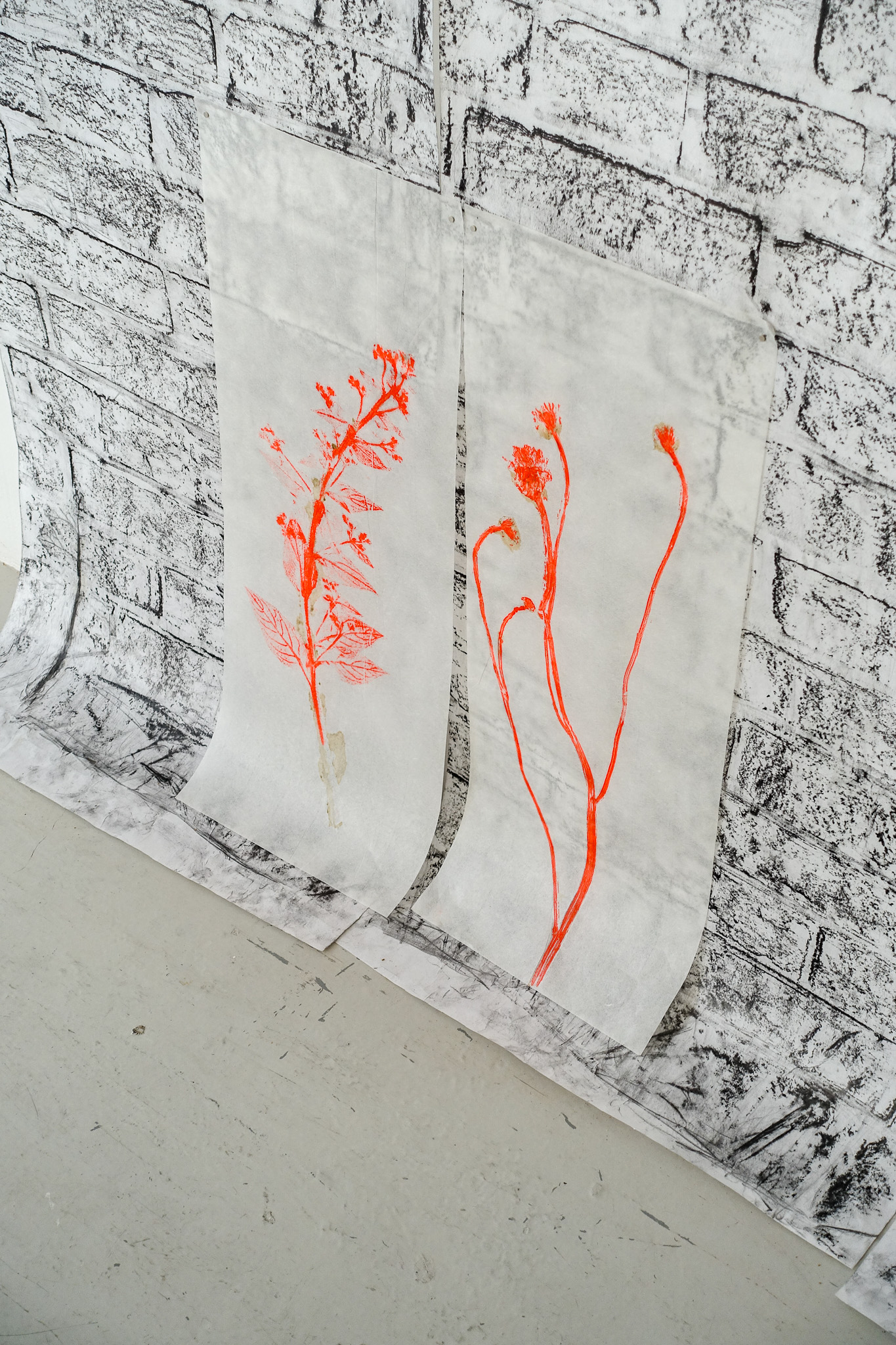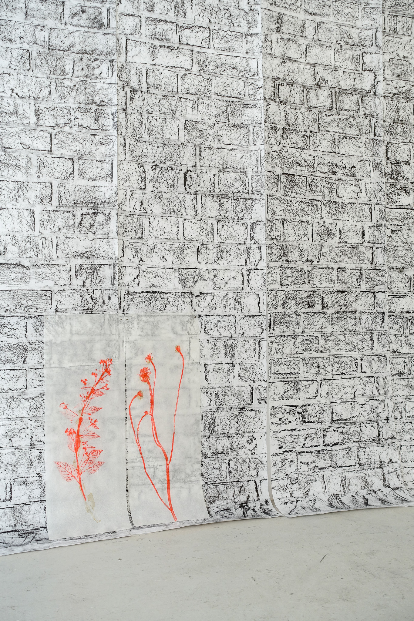 graphite on hosho paper; relief prints on kozo paper,190 x 250cm