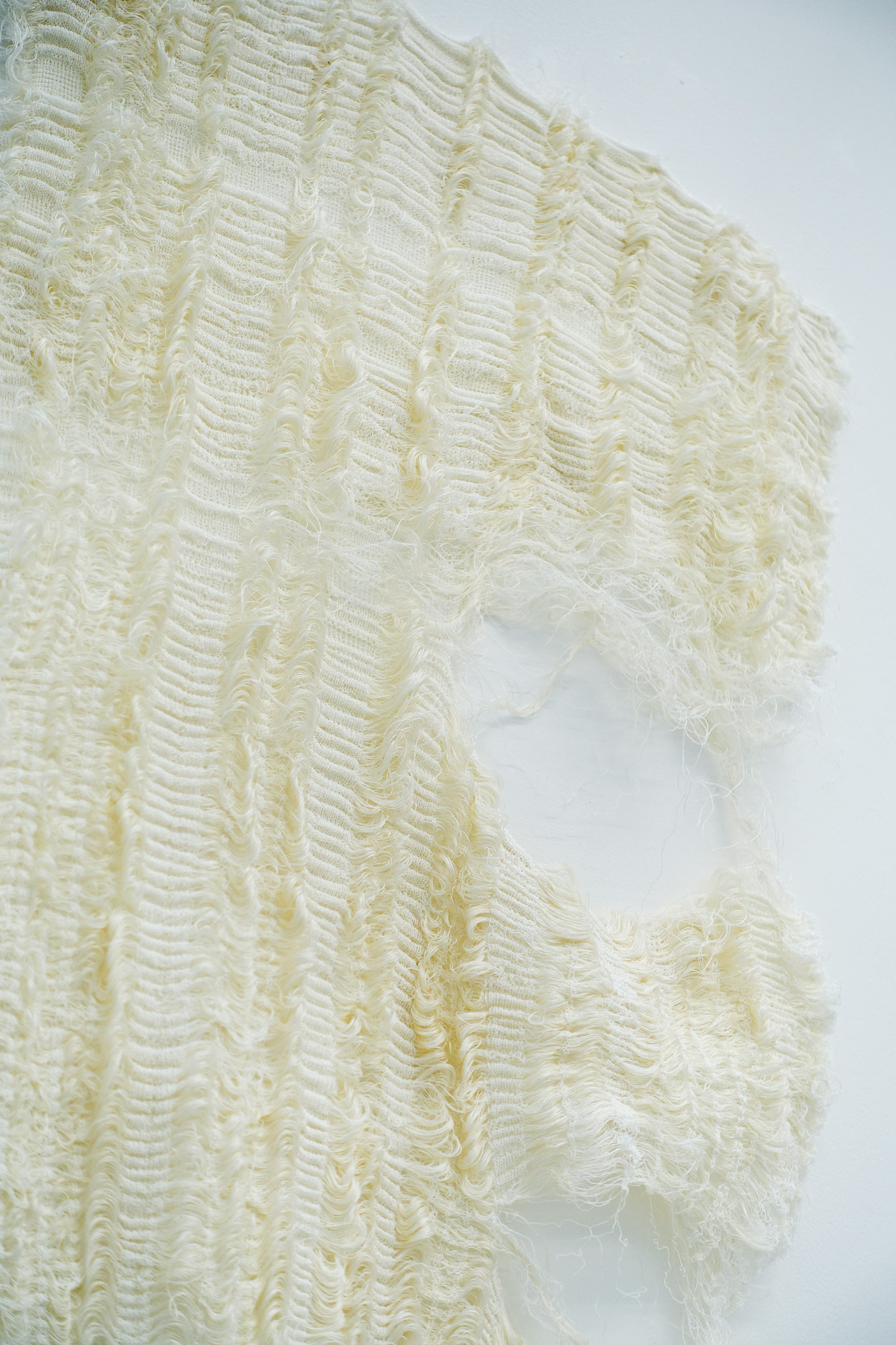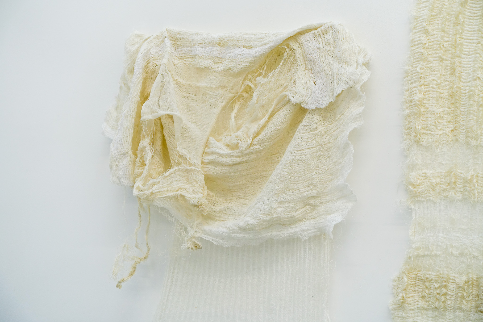 Emotional and structural membranes—soft architectures that hold memory and transformation. Knitted forms and inlay techniques investigating the interplay of light, shadow, and space, evoking the tension between past and present. It is the grounding of soil, engaging with natural fibres. Textured surfaces of inlaid yarn reflect the accumulation of memories, echoing touch and presence. Subtle yet rigid, the layered forms hold traces of lived moments. It is what the body absorbs, remembers, and ultimately heals. By allowing light to filter through and cast shadows, the work becomes an ephemeral map of presence and absence—a space where memory and form coexist. It is a meditation on the tactile and the temporal, offering a quiet space to reflect on what remains grounded amidst change.