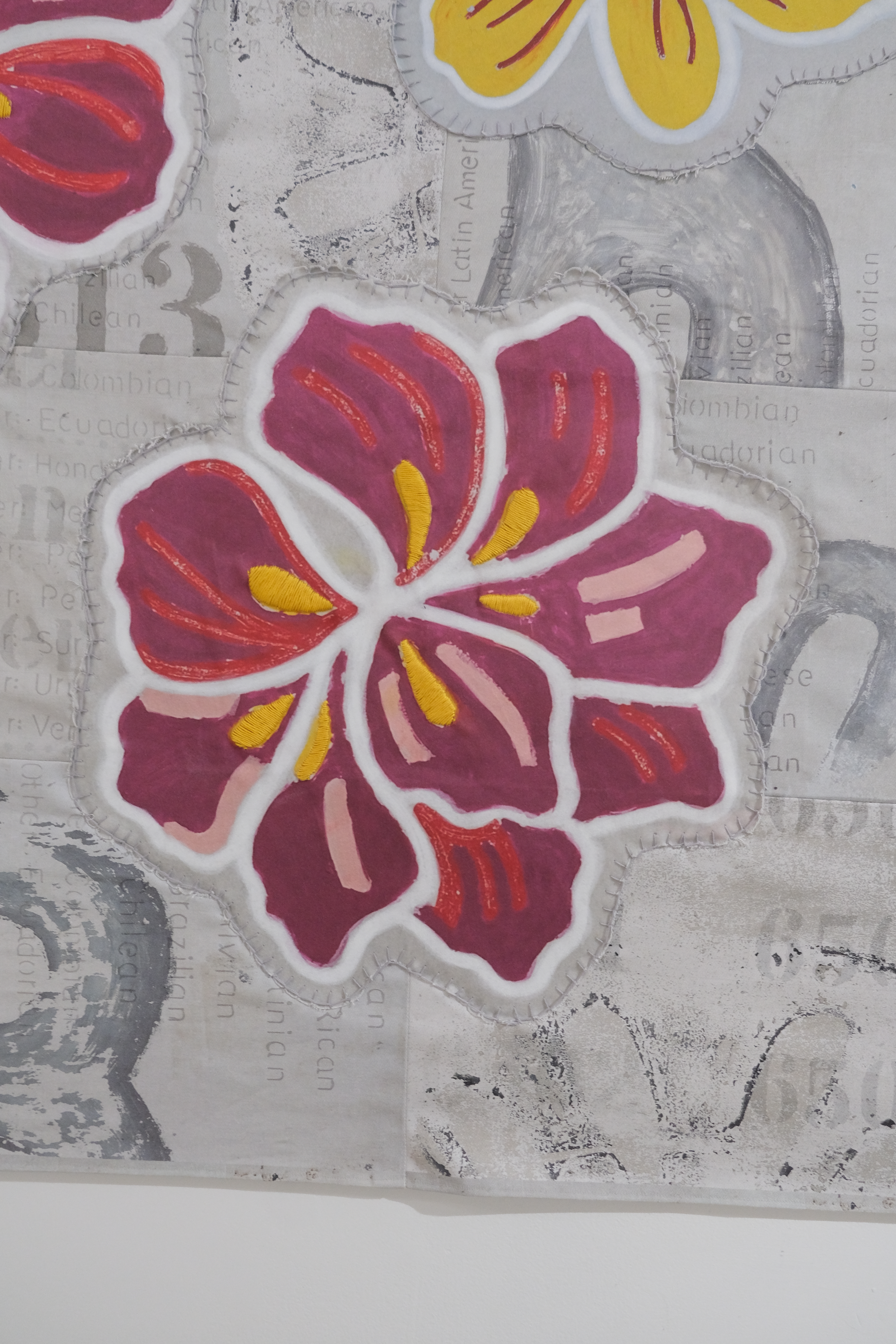 digital prints on cotton drill and cotton satin, acrylic paint, thread, 100 x 180cm