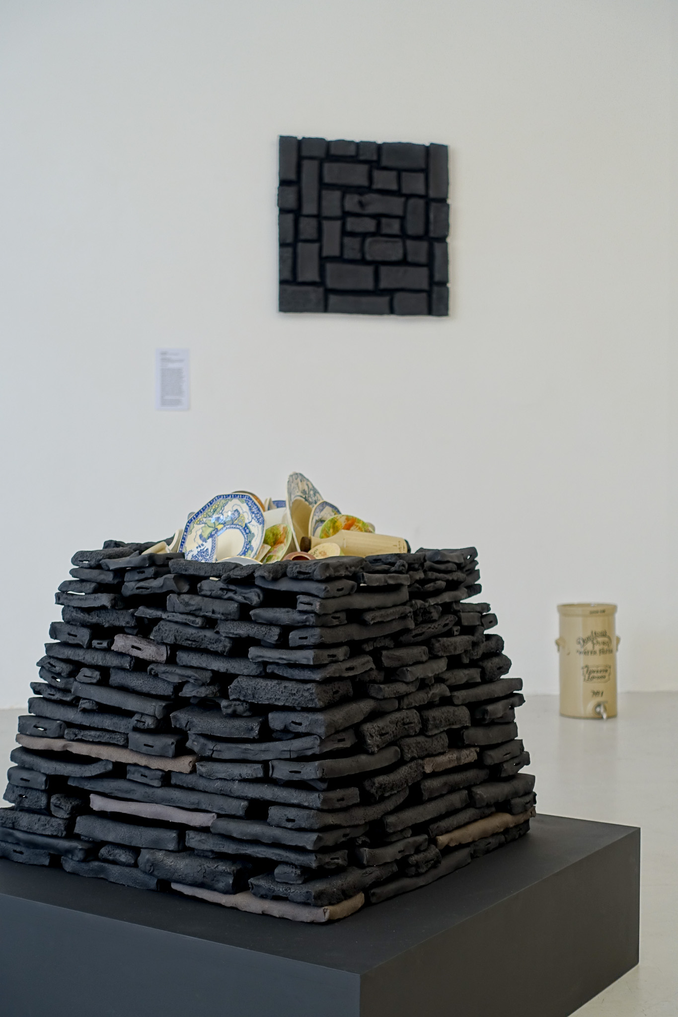 clay, paint, vintage plates and shards (including some mudlarked shards), vintage salt glazed containers, 60 x 60 x 80cm