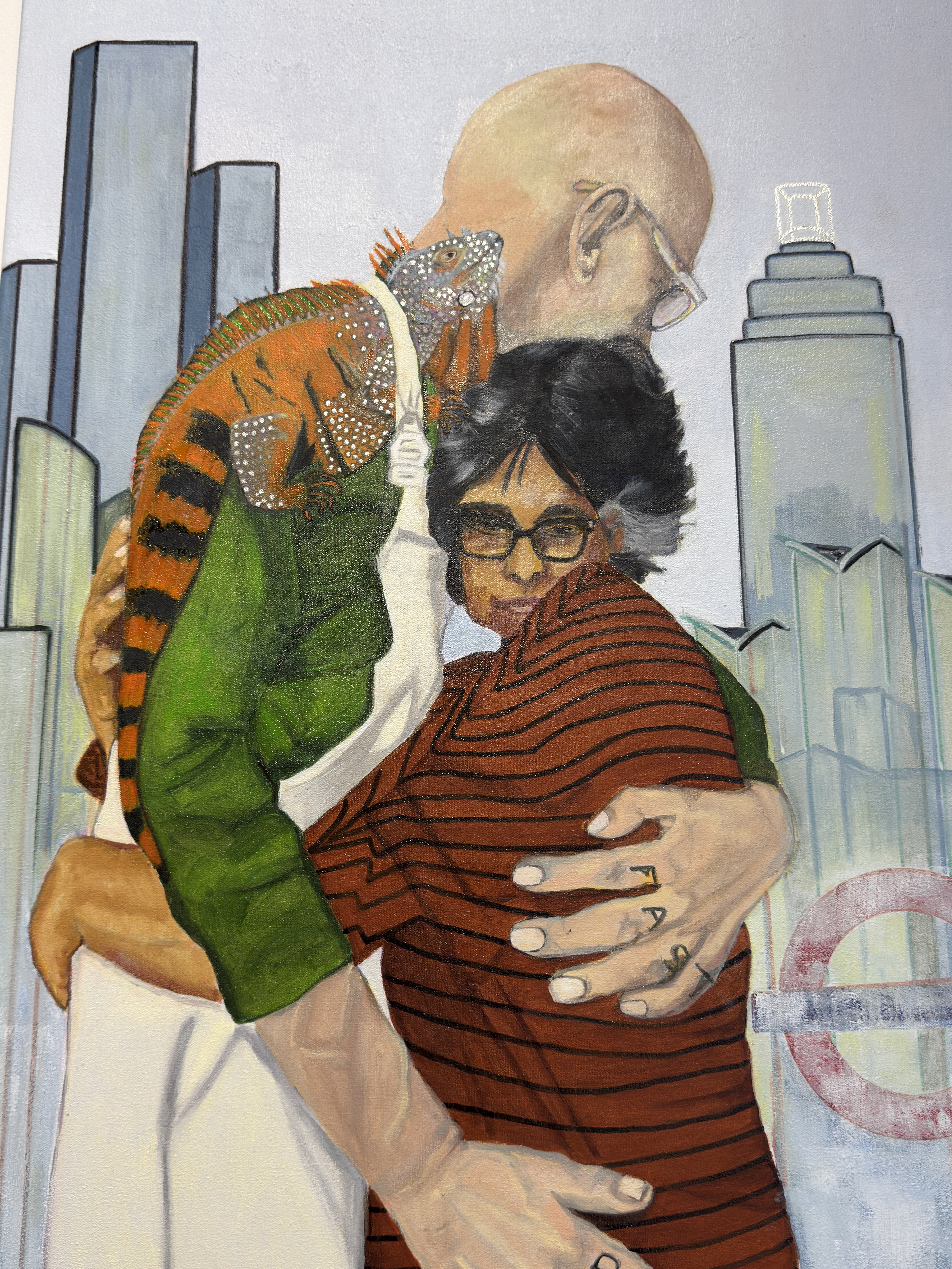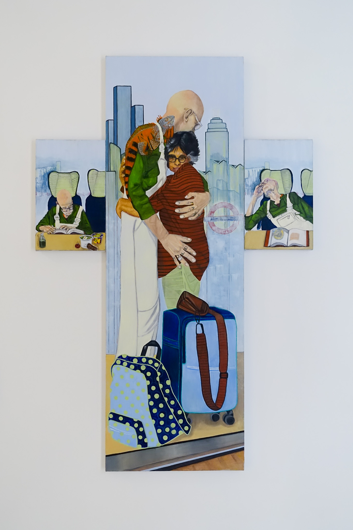 Nimmi is both an artist and practising psychologist. Her recent work explores political realities such as uncompassionate immigration policies, capitalism, and class structures that are unsympathetic to the poor. Typical of a return to artistic sincerity and a post post-modern, or metamodern mindset, Nimmi took Vauxhall Station and The Handbag Factory as her starting points for this piece: she and Andrew, her partner, regularly travel through Vauxhall on their journeys to and from each other. Vauxhall is reflective of the diversity of South East London’s population and representative of migration and diaspora – themes which feature heavily in Nimmi’s work. Handbags, in the form of luggage, have been close companions. The struggle of these journeys is represented in the configuration of the cross.