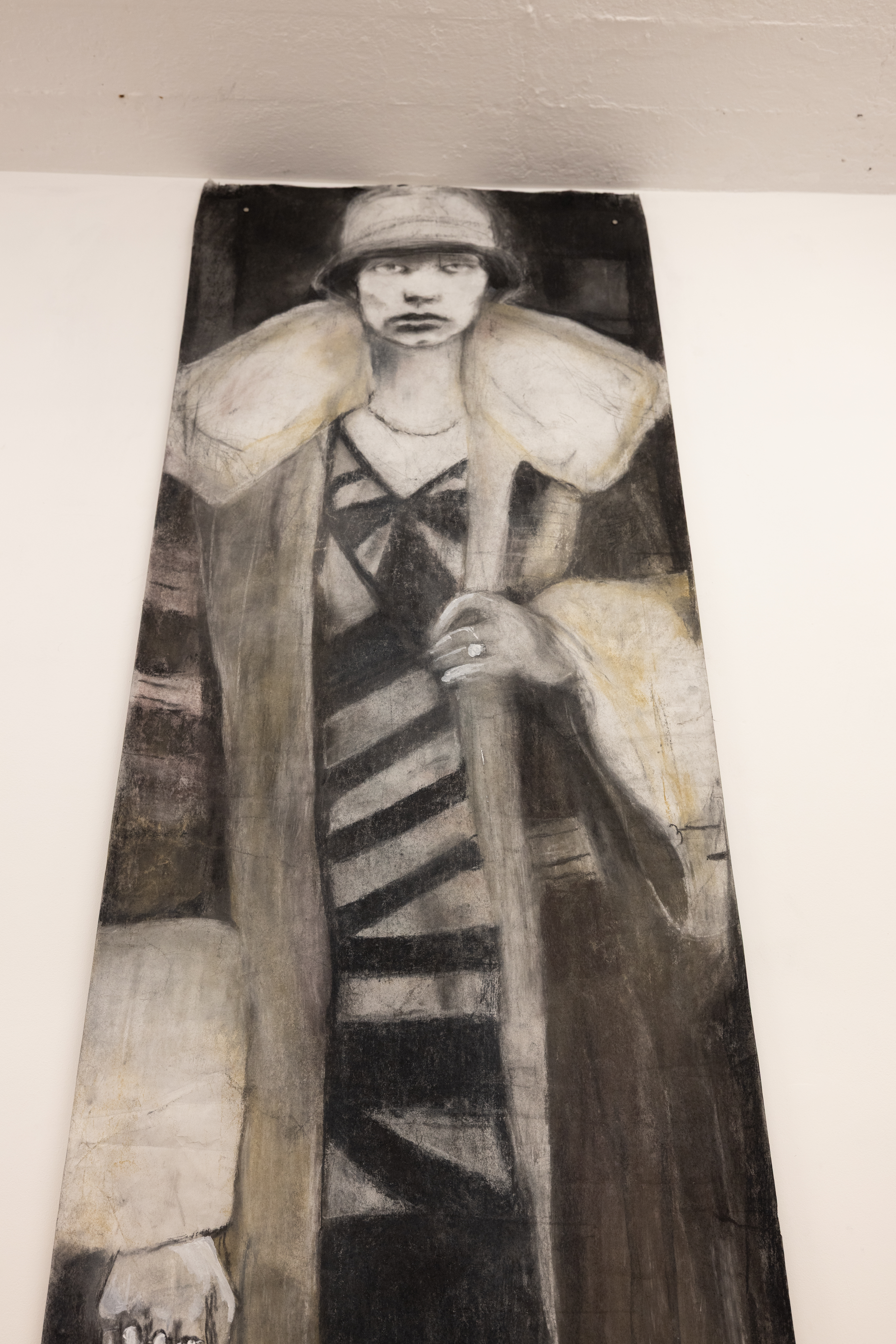 charcoal and pastel on paper, 90cm x 45cm
